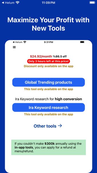 Helium 10 Trending Products, satıcılar için tasarlanmış yenilikçi bir uygulamadır. Bu uygulama, kazanan ürünleri keşfetmek ve listelemelerinizi optimize etmek için güçlü anahtar kelime araştırma ve ürün analiz araçları sunar. Pazar trendlerine derinlemesine dalarak, kârlı nişler belirlemeye ve veri odaklı içgörülerle stratejinizi geliştirmeye yardımcı olur. Hem yeni hem de deneyimli satıcılar için ideal olan bu uygulama, daha akıllı kararlar almanıza ve satışlarınızı artırmanıza olanak tanır. Satıcılar için en iyi araştırma aracı ile başarıyı açığa çıkarın.